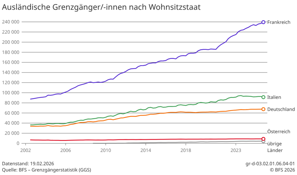 Dies wird an der Statistik für Grenzgänger besonders deutlich, welche das Bundesamt für Statistik BFS unlängst publizierte.